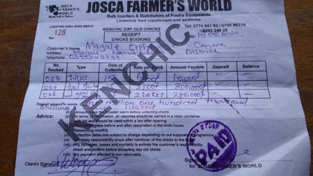 This is a receipt for the chicks a 19yr old boy in the US bought us and everything we would need for 9 months. This is the sleeping area in one of our dorms.This was a donation of food that we were able to buy with $100 us dollars.